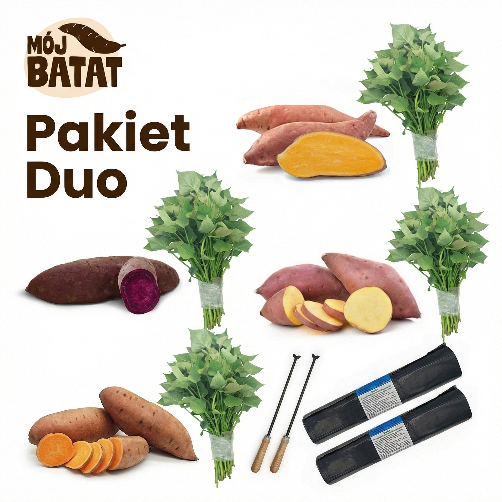 Bo dobre rzeczy są lepsze we dwoje. Polecamy go tym, którzy już wiedzą, co lubią – i chcą tego więcej. W Pakiecie dla Dwojga otrzymujesz po 4 sadzonki wybranych odmian batata, uzupełnione o 2 znaczniki do sadzenia i 2 folie ściółkujące. Idealny wybór dla ogrodników działających w parze, do większych grządek lub po prostu wtedy, gdy naprawdę poważnie podchodzisz do przygotowań na sezon. I tak: dostarczamy go do Ciebie bezpłatną wysyłką. ✅